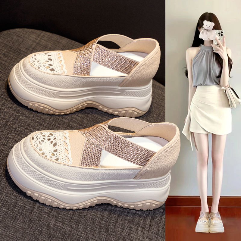 Rhinestone platform height increasing casual shoes